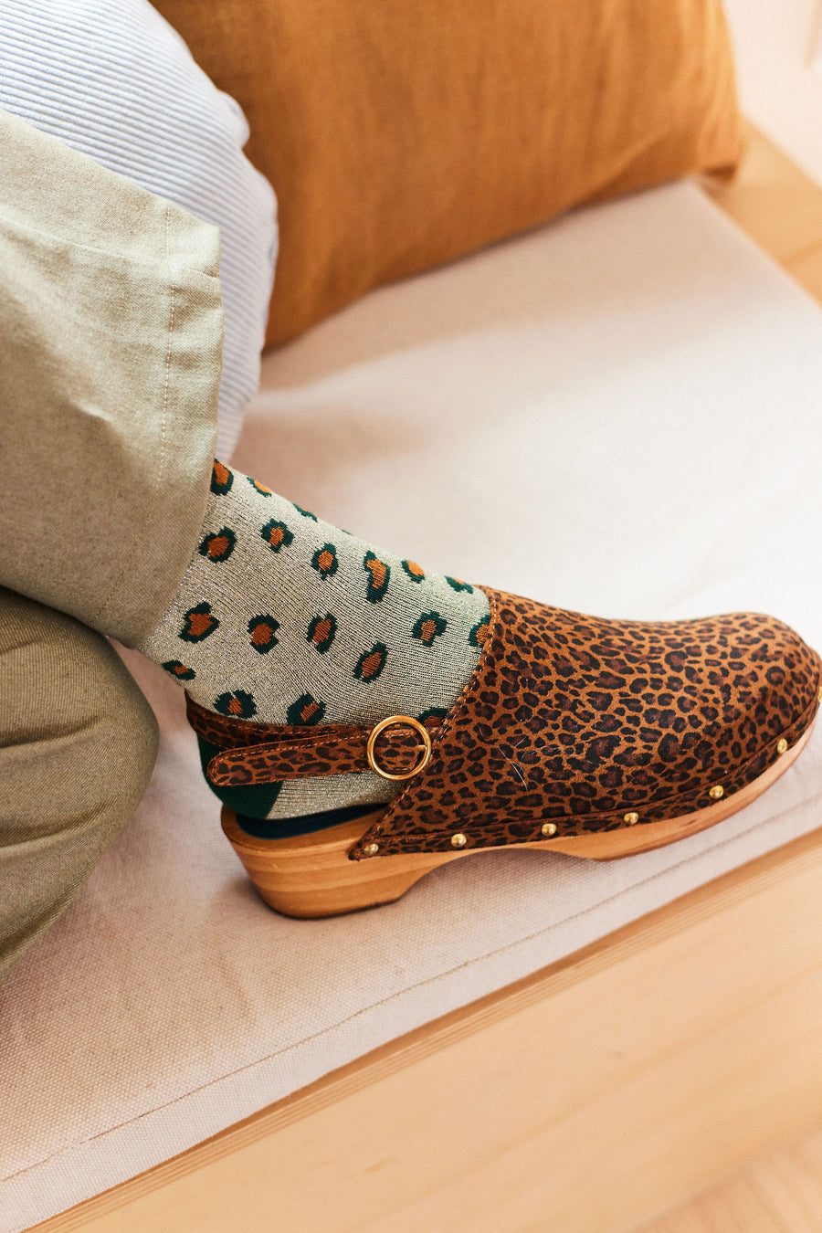 Georgette la chaussette parfaite ! Fabriquée en France. Passion pour ce léopard dans les tons de vert. Parfait pour accessoiriser vos tenues.