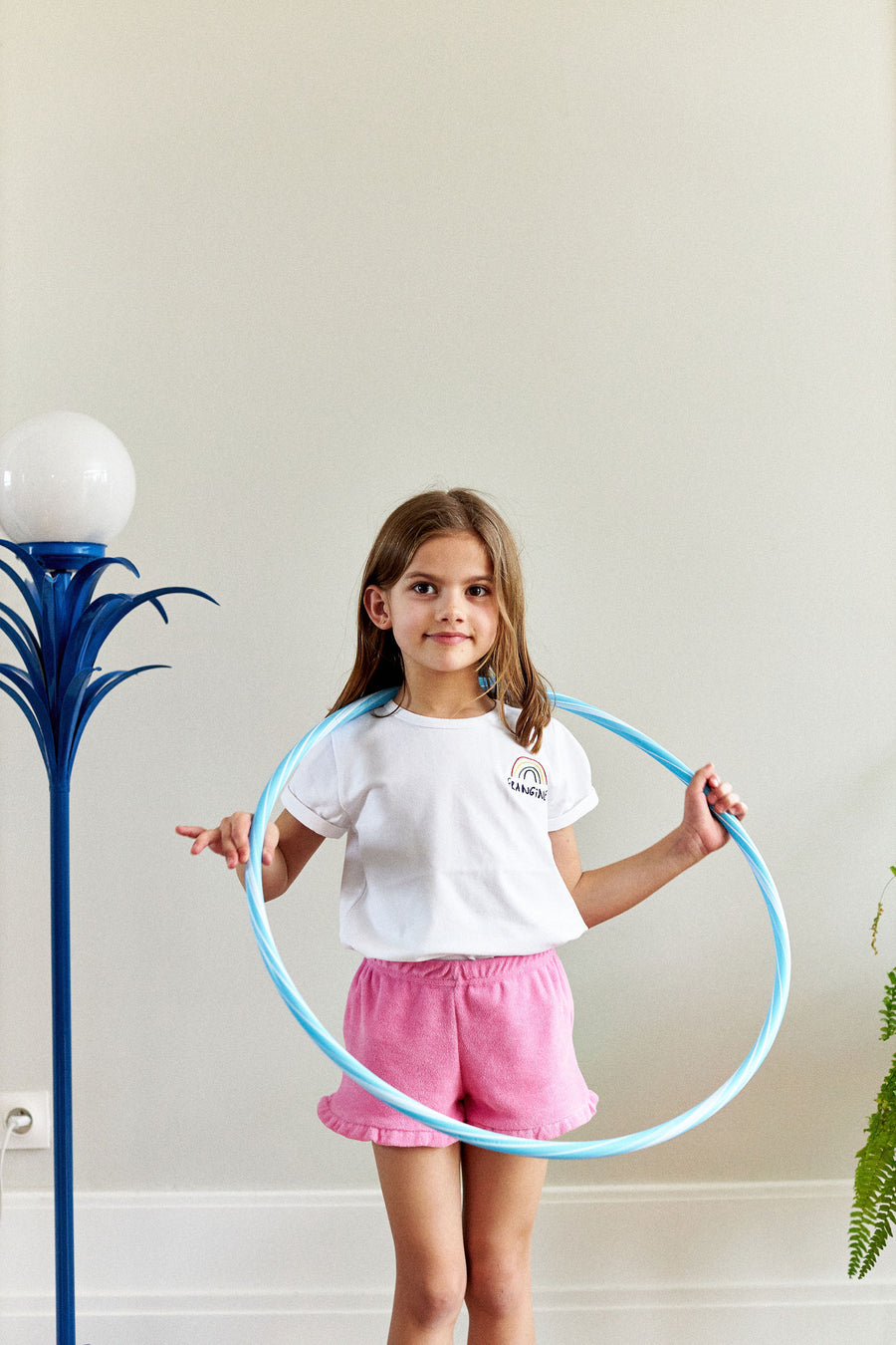 Short Marilou c'est le short trop pratique. Éponge rose pep's, coupe avec des froufrous et taille élastique. La pièce parfaite pour filer à la plage, enfilable en 2 secondes top chrono pour toujours plus de praticité.